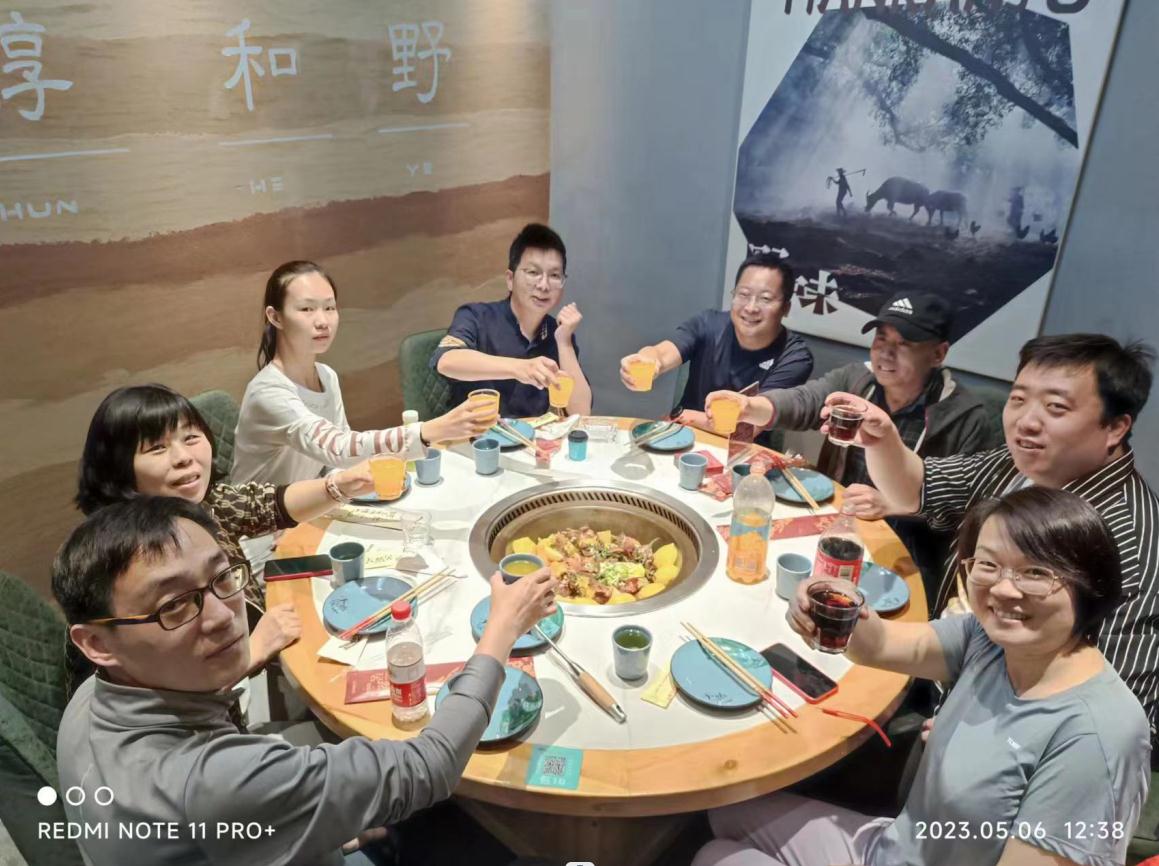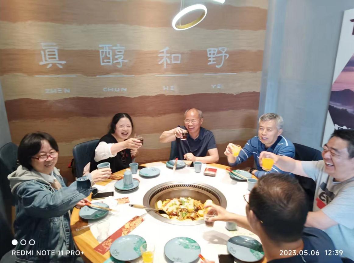全员登顶下山后,大家欢聚一堂,享受了一顿丰盛的大餐。