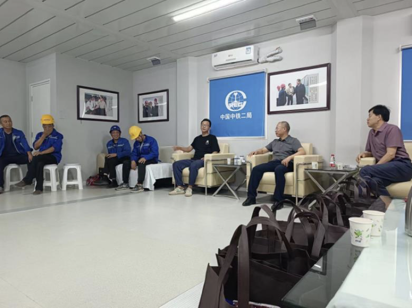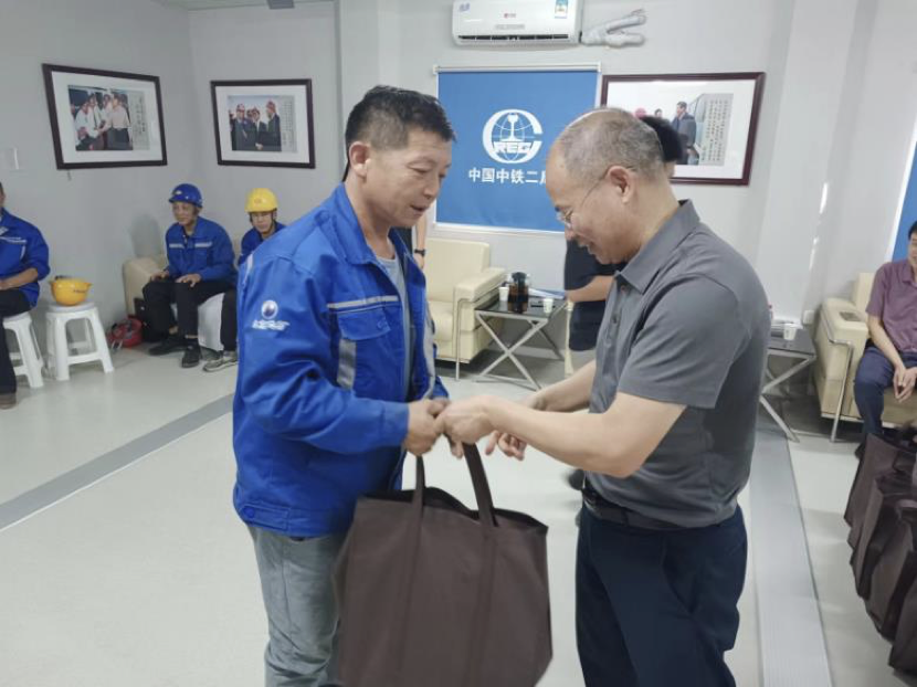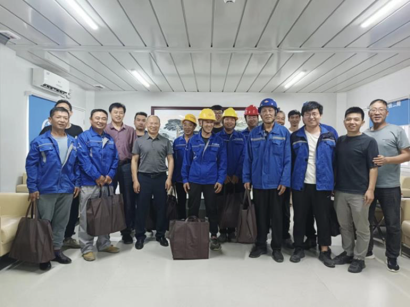 2023年十一和中秋双节即将到来,为了深入贯彻公司以人为本的核心管理理念,感谢一线员工多年来的辛勤耕耘和默默付出,进一步做好基层生产工作人员的生活保障工作,充分体现公司对一线生产工作人员的尊重与关怀,公司为每一位一线生产工作人员准备了丰富的慰问礼包。由公司总经理严建兵同志,常务副总经理任汉锋同志带队,对各个施工现场的一线生产工作人员进行了慰问。