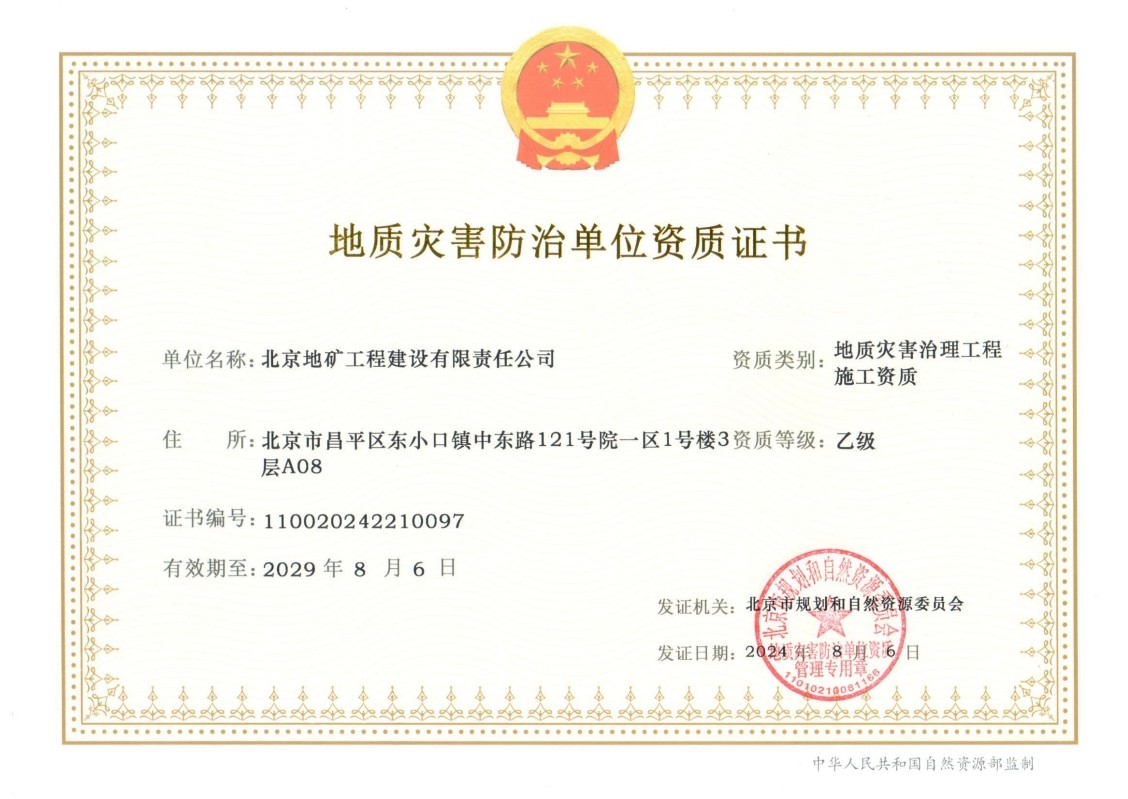热烈庆祝天狼私人永久伊甸院获得地质灾害评估和治理工程勘察设计资质和施工资质(乙级)