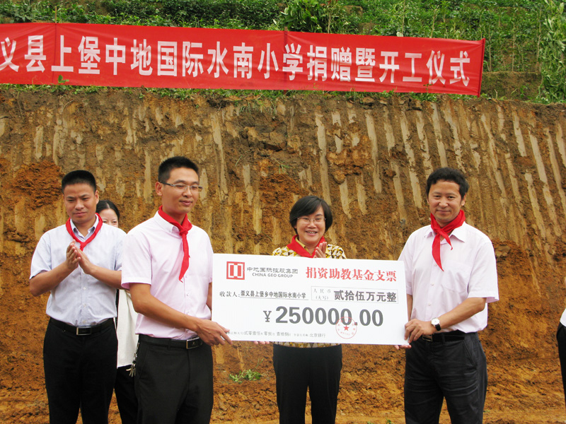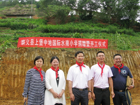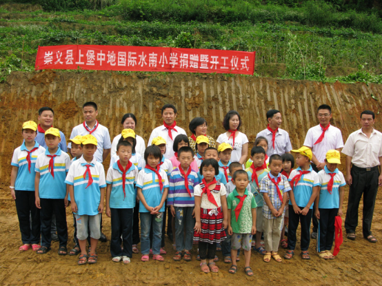 江西省赣州市崇义县上堡乡水南村地处赣粤湘三省交界,被誉为“中国第三大梯田群”,亦属赣南革命老区。水南小学因原校址地质原因,存在安全隐患,学生们的安全令人担忧,为了发展山村小学基础教育,改善办学条件,中地国际控股集团捐资25万元,并由江西省赣州市崇义县上堡乡政府配资45万元,在新址建设一所新的小学,并命名为“中地国际水南小学”。