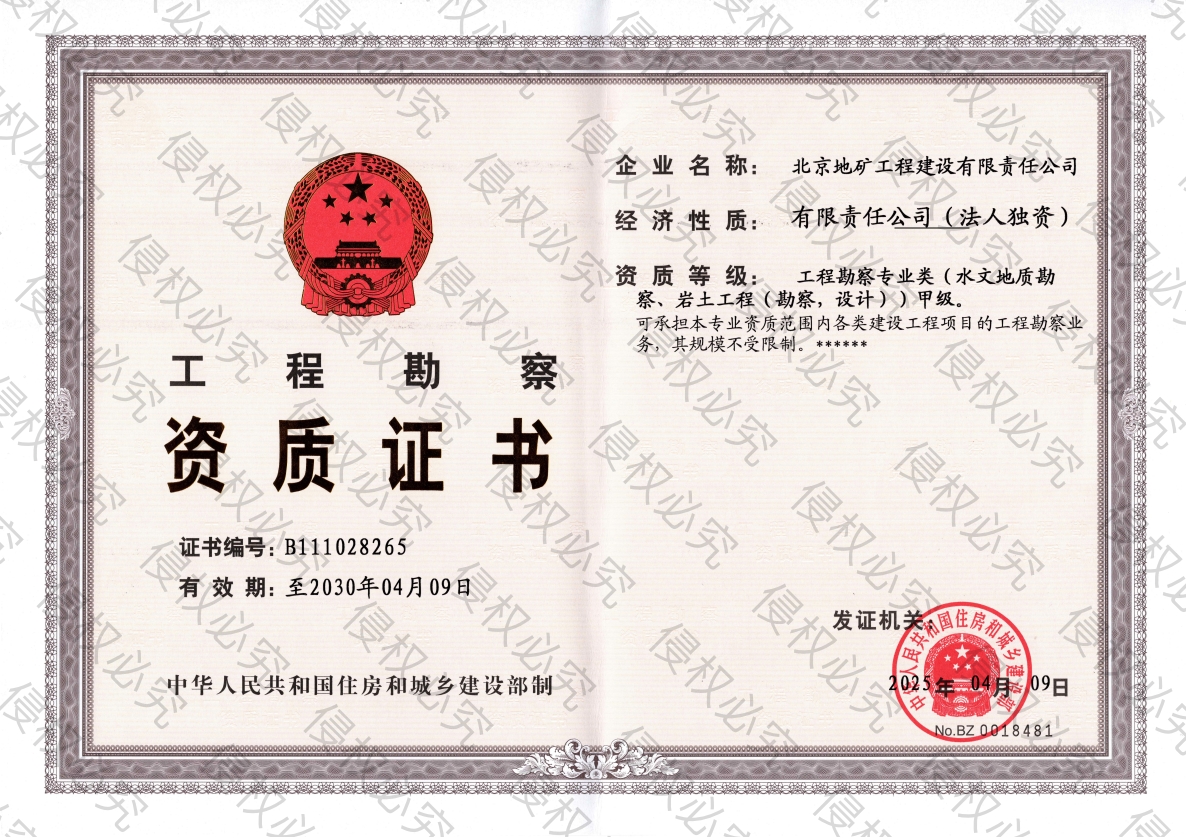 地质灾害评估和治理工程勘察设计资质(乙级)